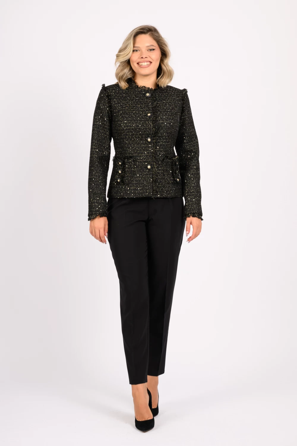 Descoperă jacheta neagră tip Chanel, elegantă și confortabilă, perfectă pentru orice ocazie. Alege stilul românesc!
