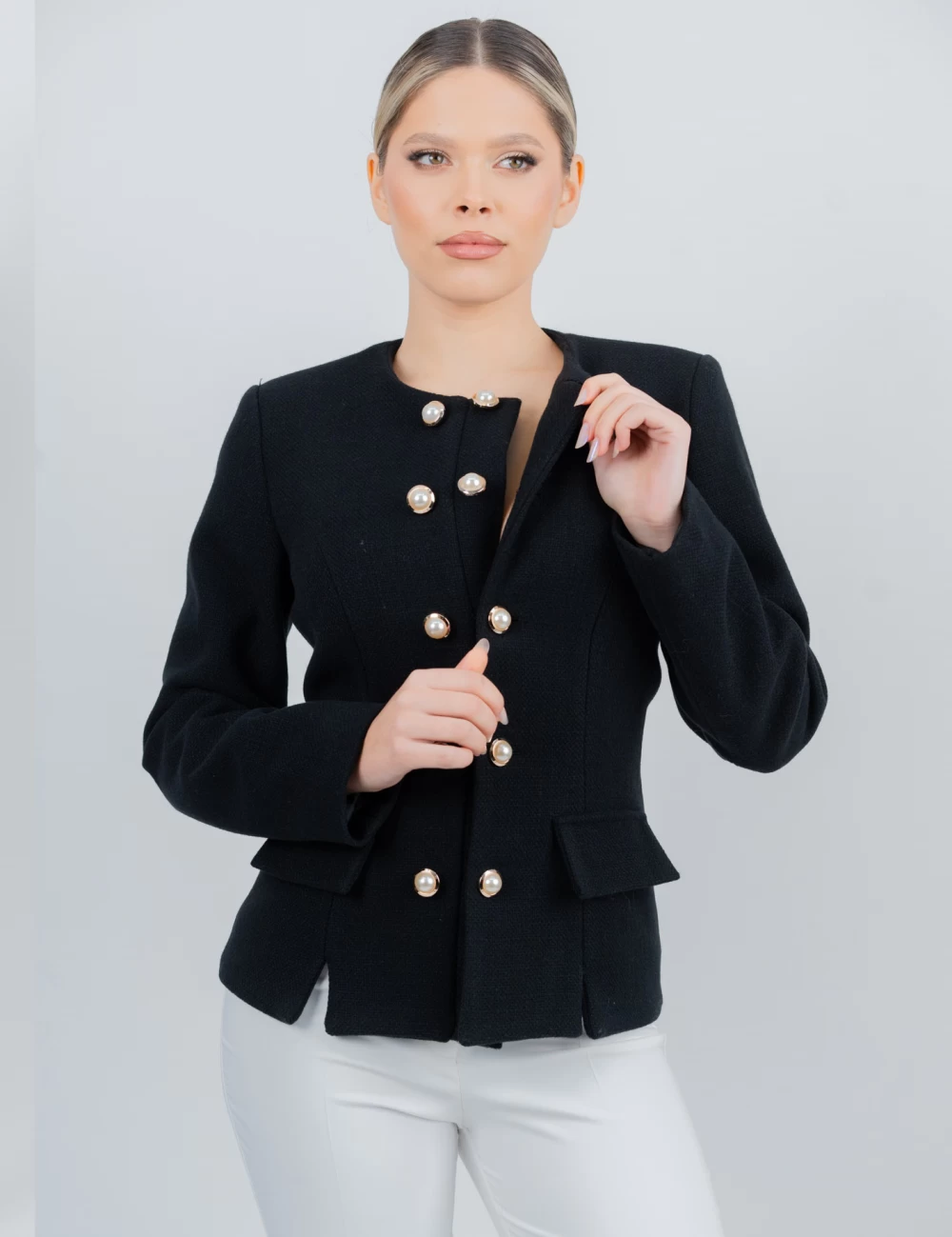 Reducere 15% – Jacheta neagra din stofa tesuta cu doua raduri de nasturi
