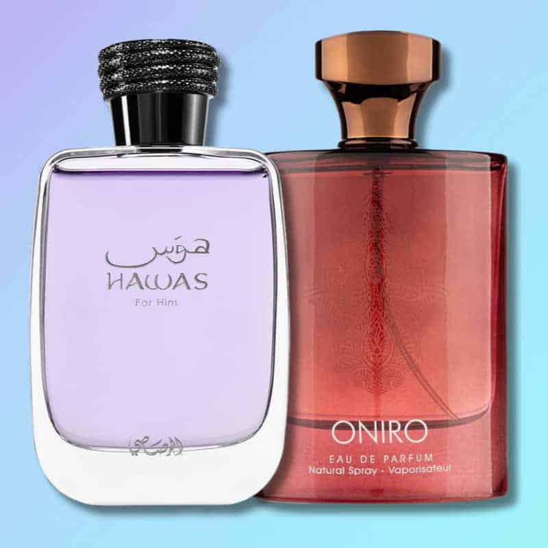 Combinând parfumurile Rasasi Hawas For Him și Fragrance World Oniro, acest duo vibrant aduce o semnătură olfactivă unică, ideală pentru zilele călduroase de vară.