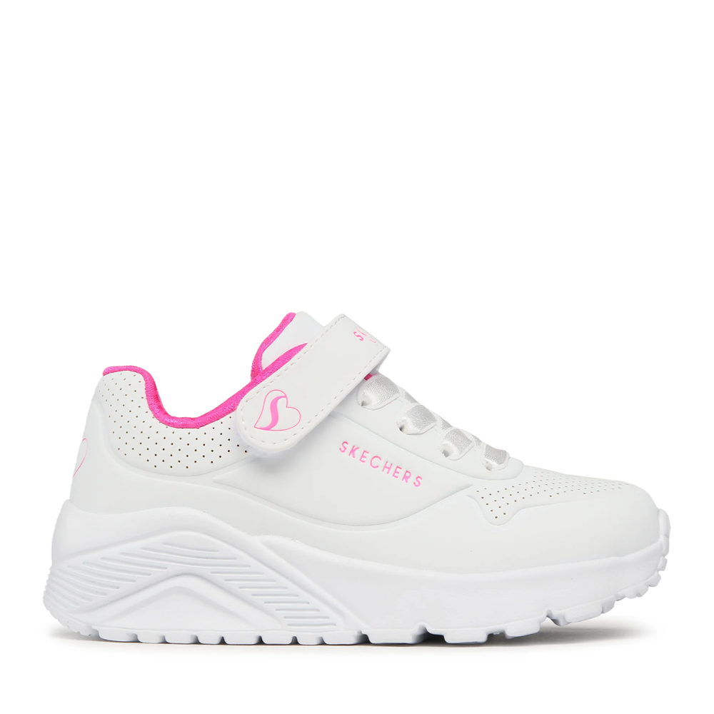 Pantofii sport pentru fete Skechers Uno Lite albi sunt alegerea perfectă pentru un stil casual și confortabil.