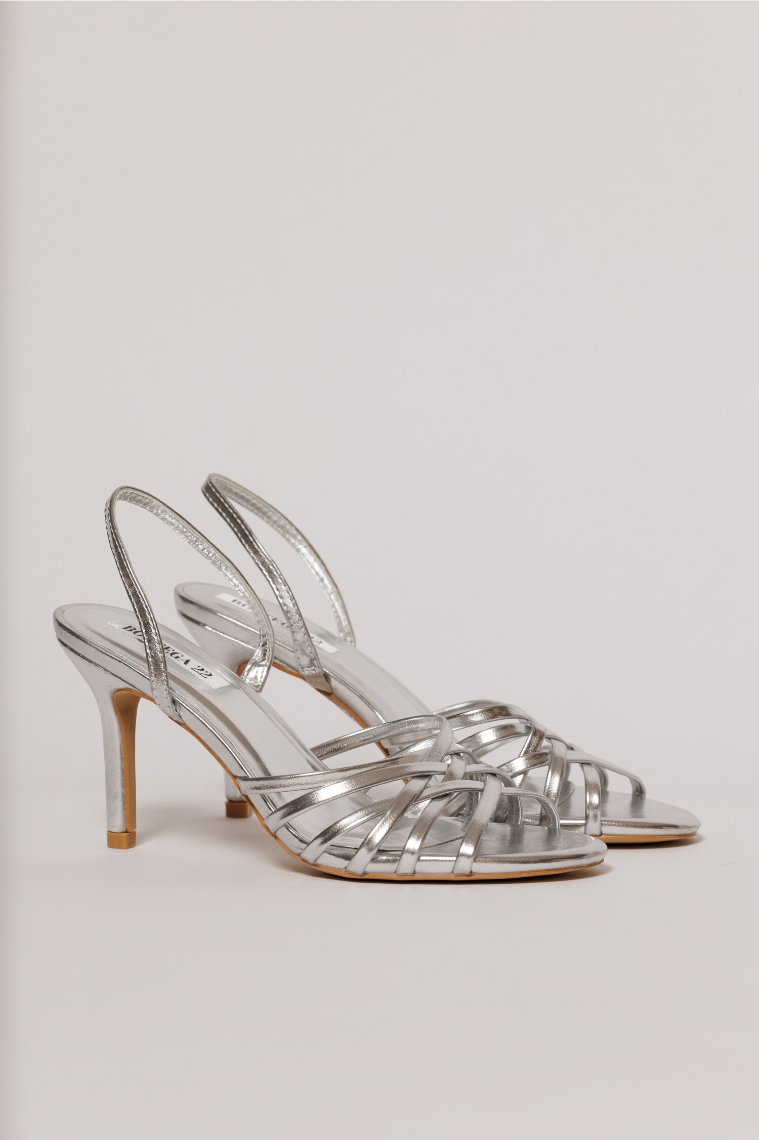 Sandale argintii cu barete împletite, toc subțire de 9 cm. Eleganță și confort pentru orice ocazie. Alege stilul perfect pentru tine!
