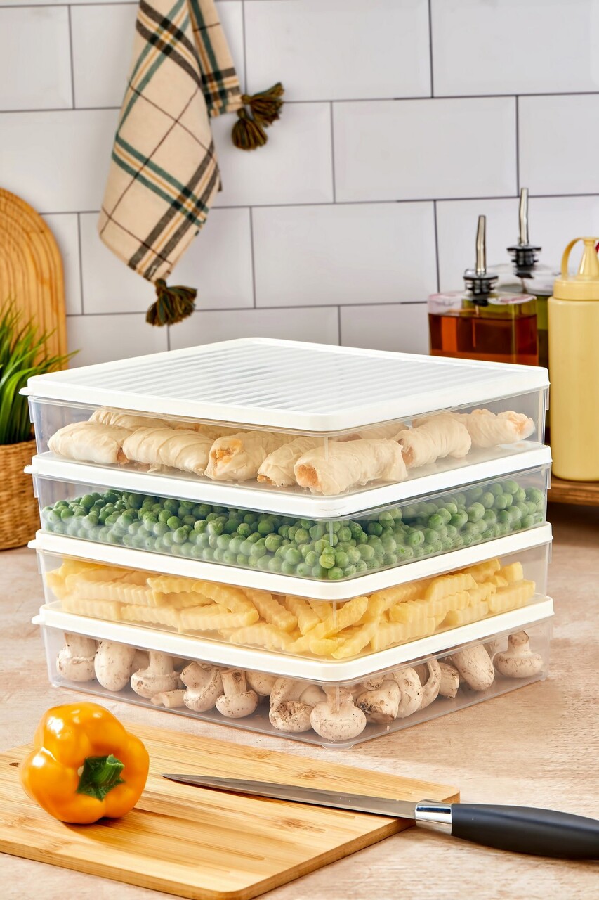 Acest set format din 4 piese are dimensiuni de 27,5 x 5 x 22,5 cm, fiind perfect pentru depozitarea alimentelor sau a diverselor obiecte.