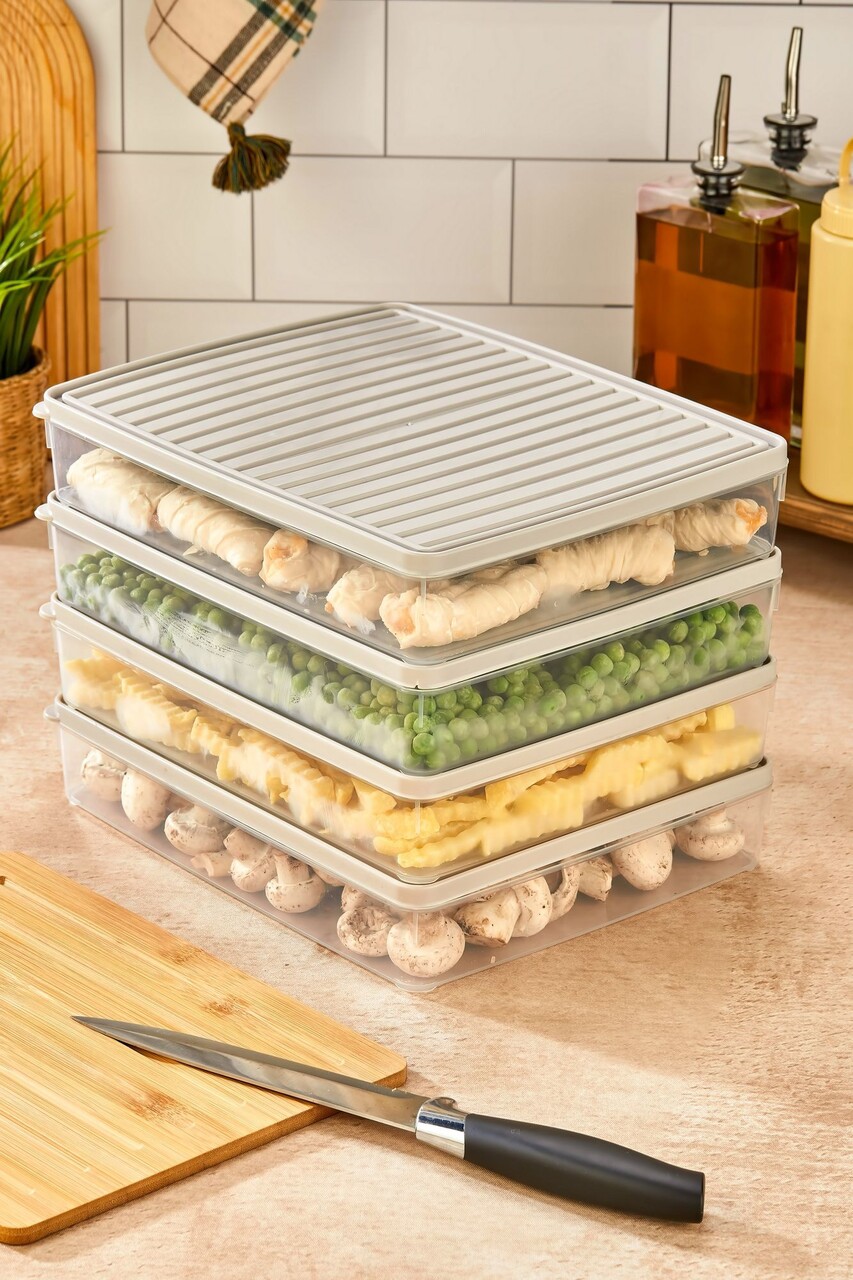 Acest set format din 4 piese, cu dimensiuni de 27,5 x 5 x 22,5 cm, este perfect pentru a depozita alimente, condimente sau diverse accesorii.