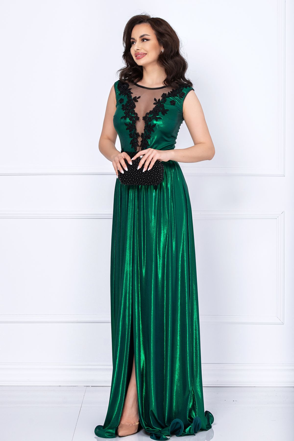 Rochie eleganta Ginette verde peliculizata cu broderie aplicata