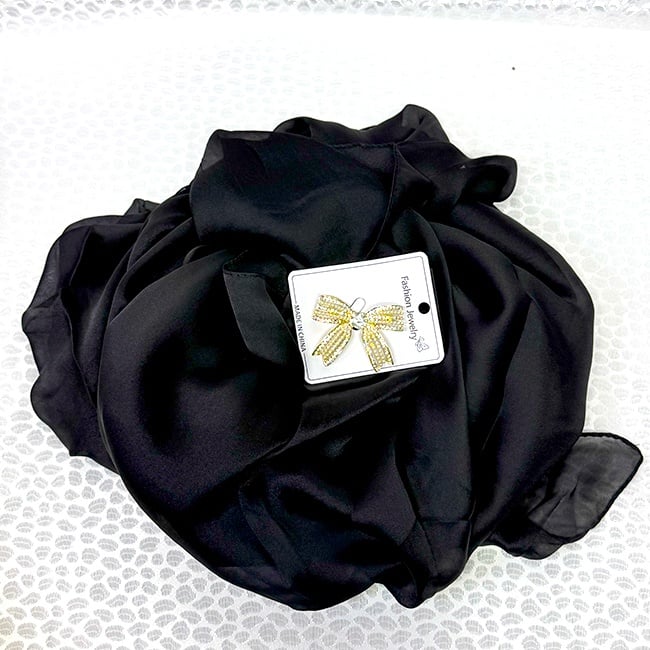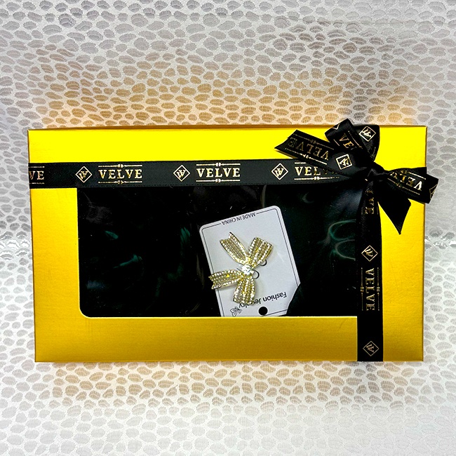 Reducere 31% – Pachet cadou Silk & Shine, cu esarfa din matase si brosa, in cutie cu fereastra, Negru