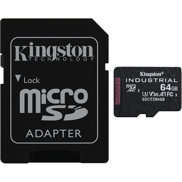 Reducere 33% – Card Memorie microSDXC Kingston Industrial, 64Gb, Clasa 10 / UHS-1 U3, Cu Adaptor SDCIT2/64GB