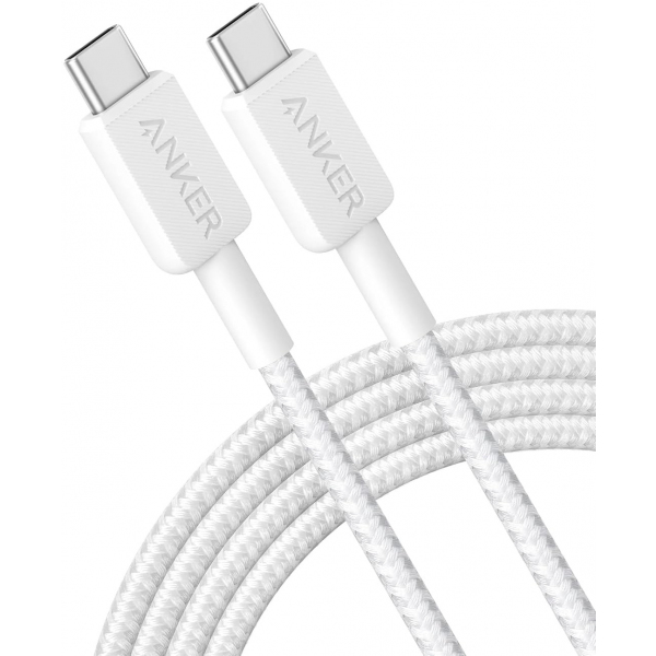 Cablu USB-C Anker 322, 60W, 1.8m, alb. Încărcare rapidă și durabilitate excepțională. Ideal pentru orice dispozitiv USB-C.