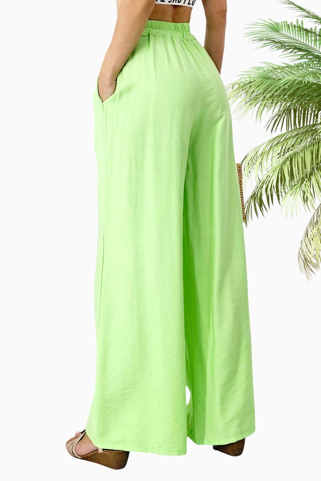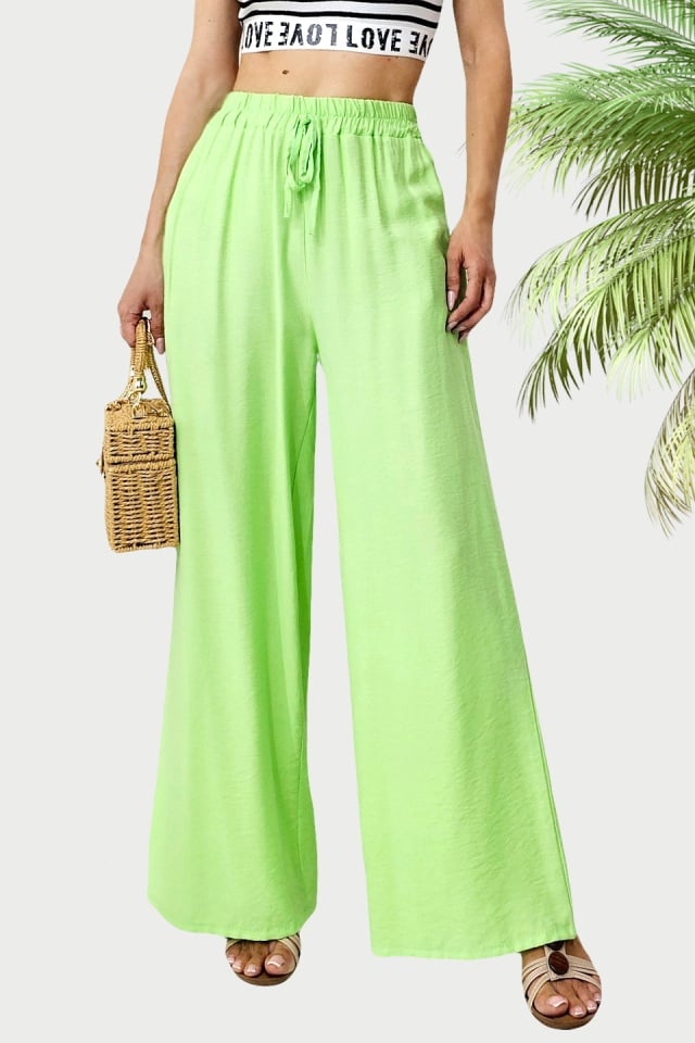 Reducere 35% – Pantaloni casual LERA, cu snur si croi lejer wide leg, Verde deschis, Marime S/M/L