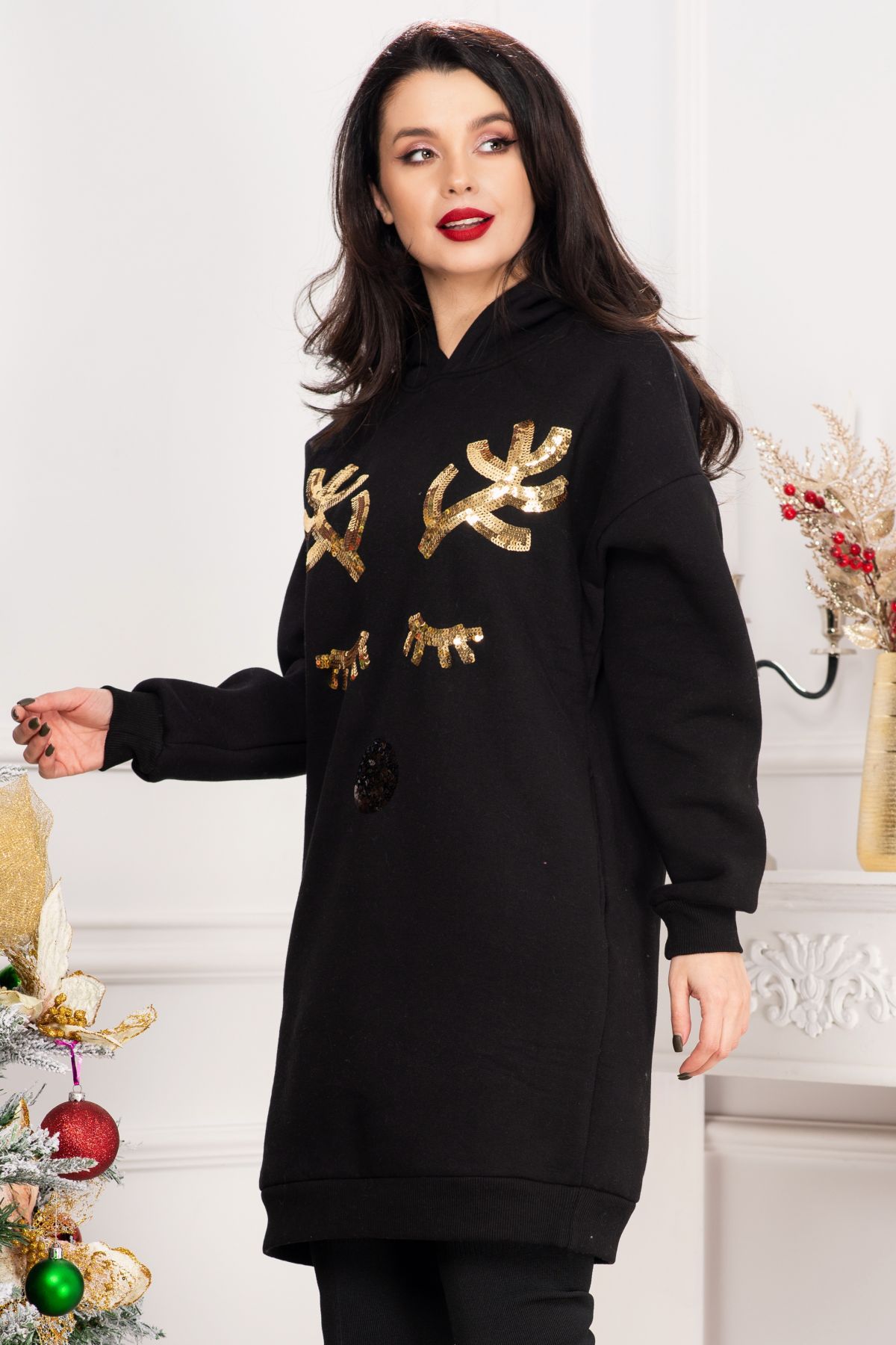 Puloverul negru lejer cu model din paiete tip ren este alegerea perfectă pentru sezonul rece.