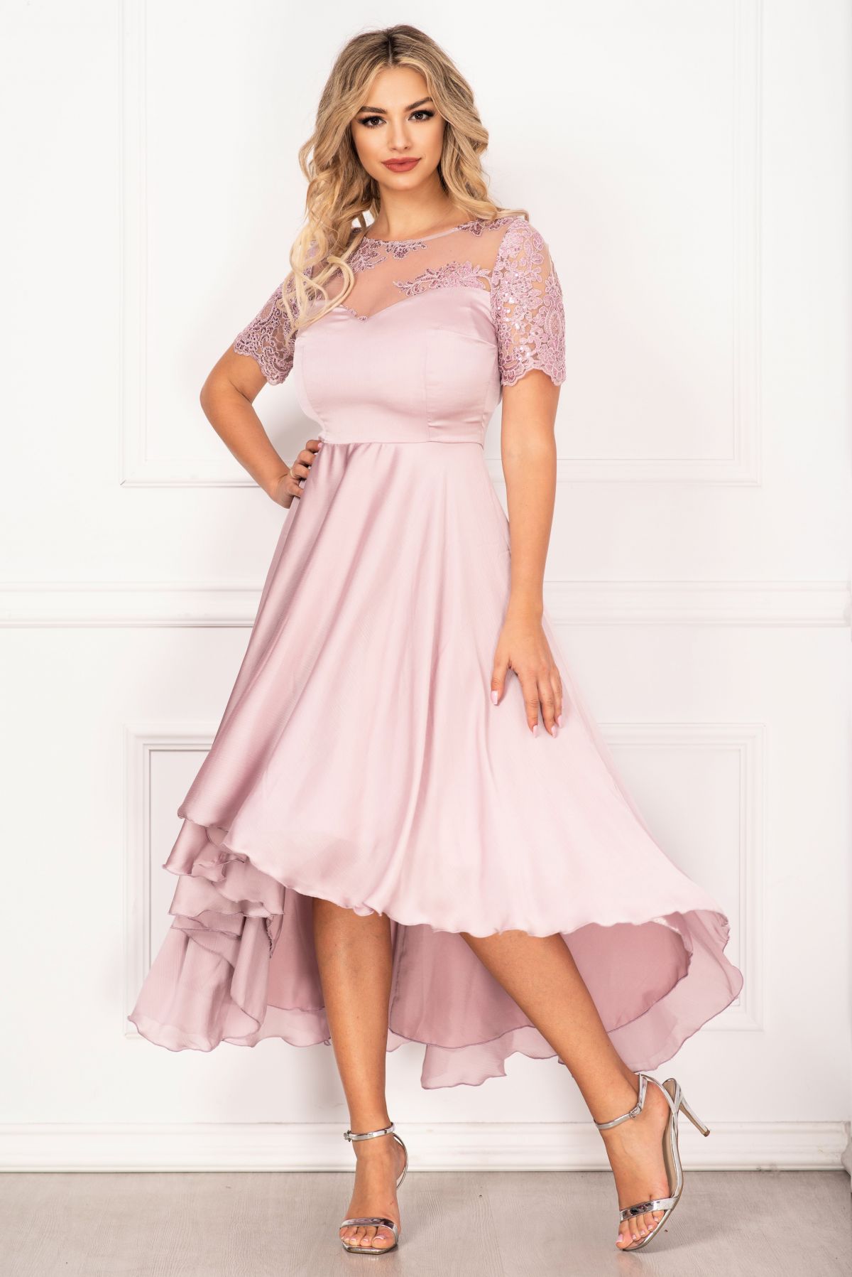 Reducere 35% – Rochie de seara rose asimetrica cu broderie si paiete