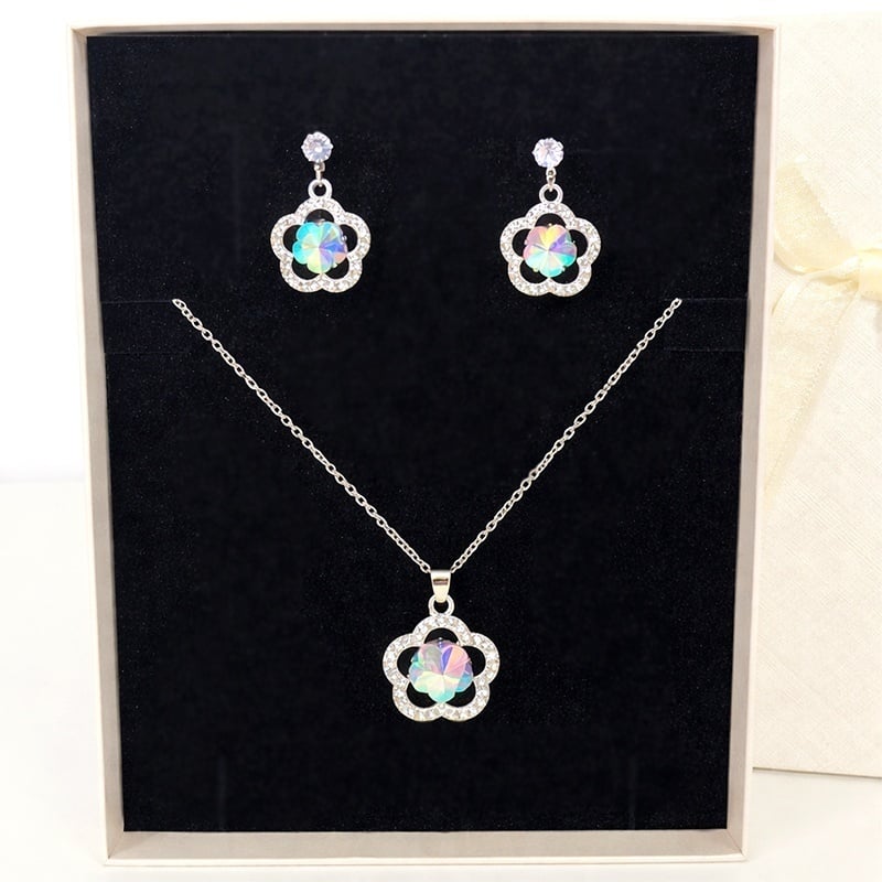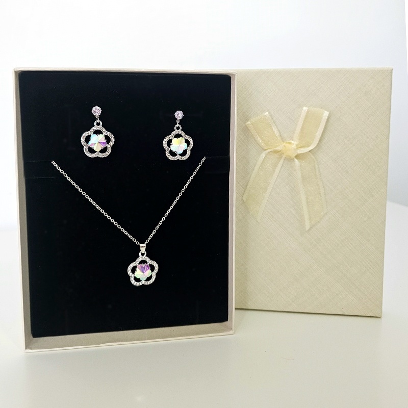 Reducere 36% – Set elegant Feeling Flower, cu colier si cercei model floral, in cutie cadou