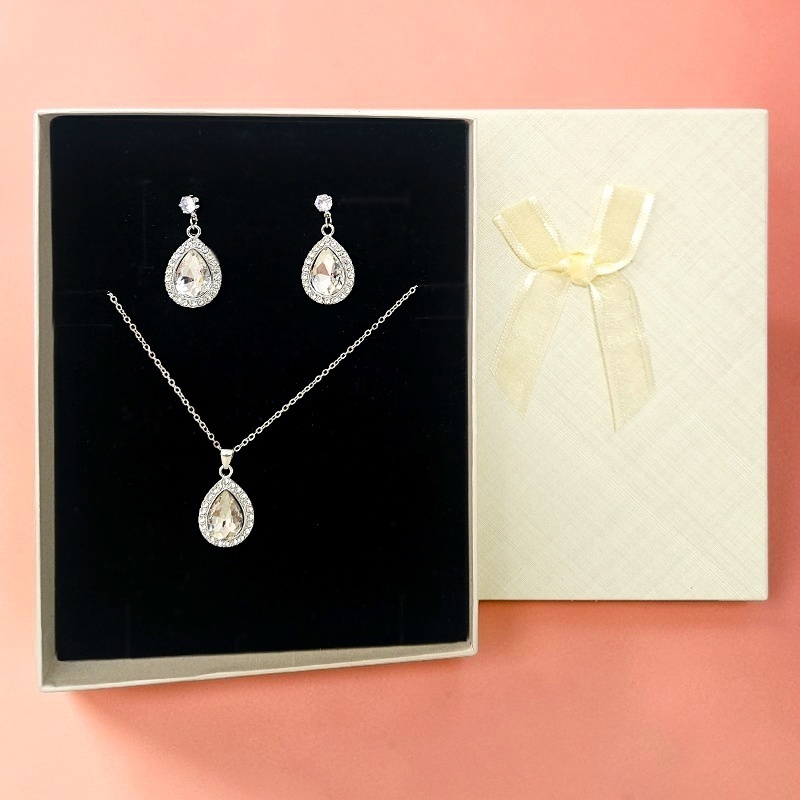 Setul Feeling Black include bijuterii inox cu pandantiv și cercei tip lacrimă, perfecte pentru ocazii elegante. Cadou ideal, ambalat elegant!