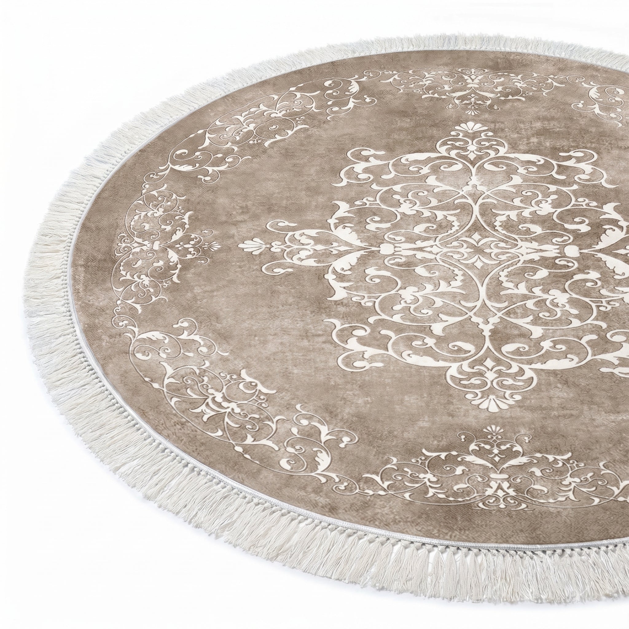 Covor rotund lavabil și antiderapant bej, ideal pentru confort și stil în orice încăpere. Ușor de întreținut, perfect pentru decor modern.