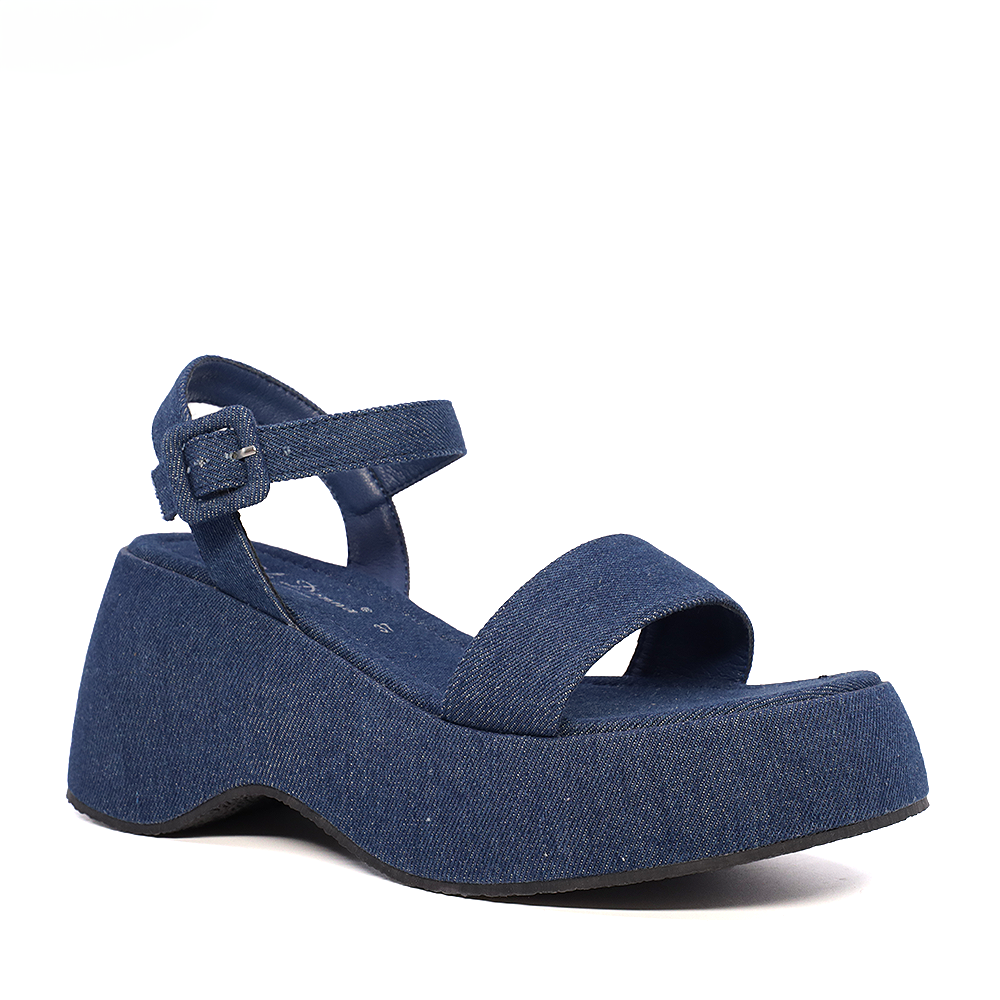 Reducere 40% – Sandale femei Solo Donna bleumarin din textil cu platformă 2547DS9106JBL