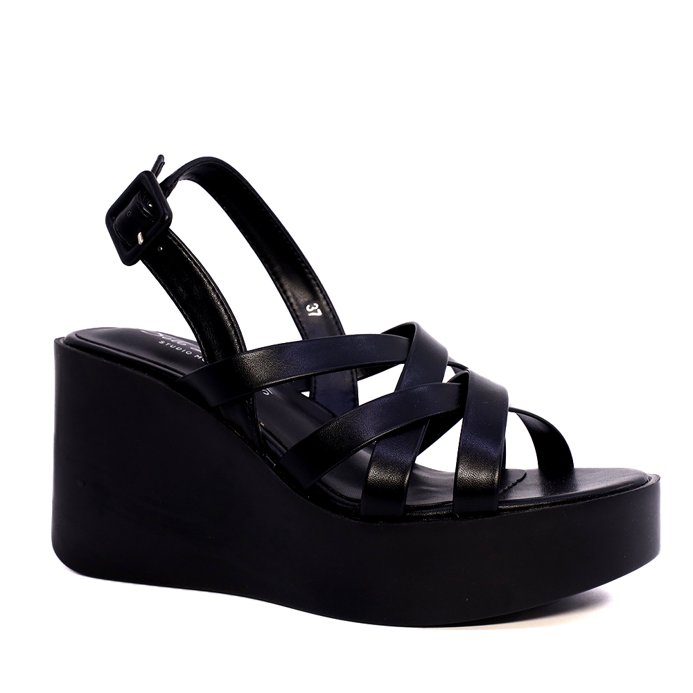Reducere 40% – Sandale femei Solo Donna negre din sintetic cu platformă 2547DS9127N