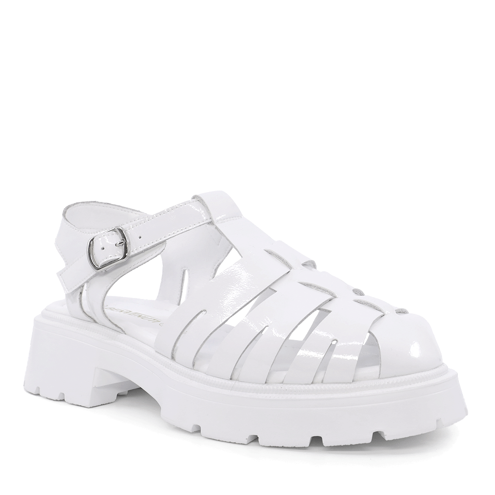Reducere 40% – Sandale închise în față femei Benvenuti albe din piele lăcuită 1277DS6456LA