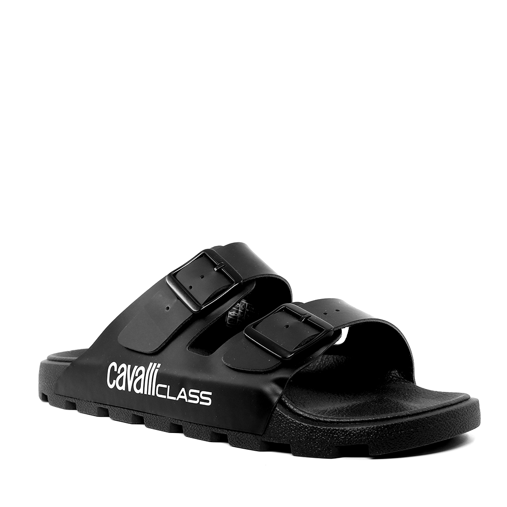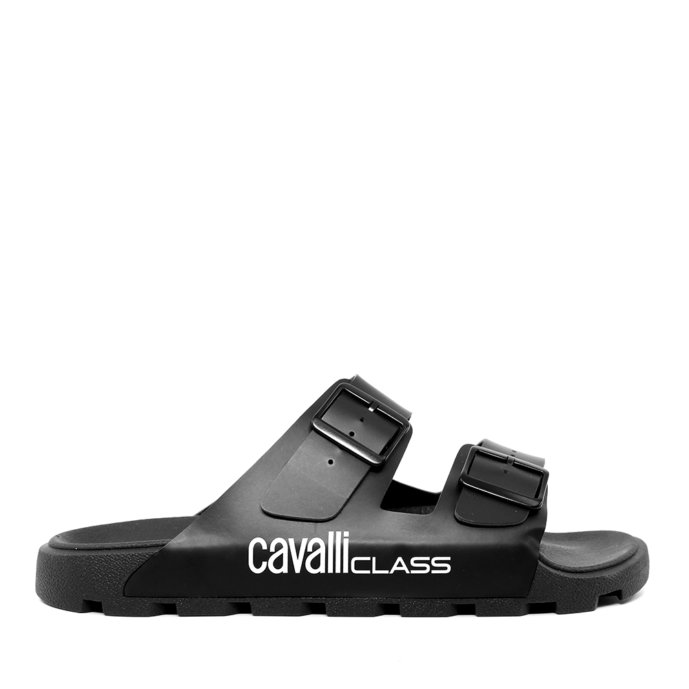Reducere 40% – Șlapi bărbați Cavalli Class negri din cauciuc cu logo imprimat lateral 3497BST24131N