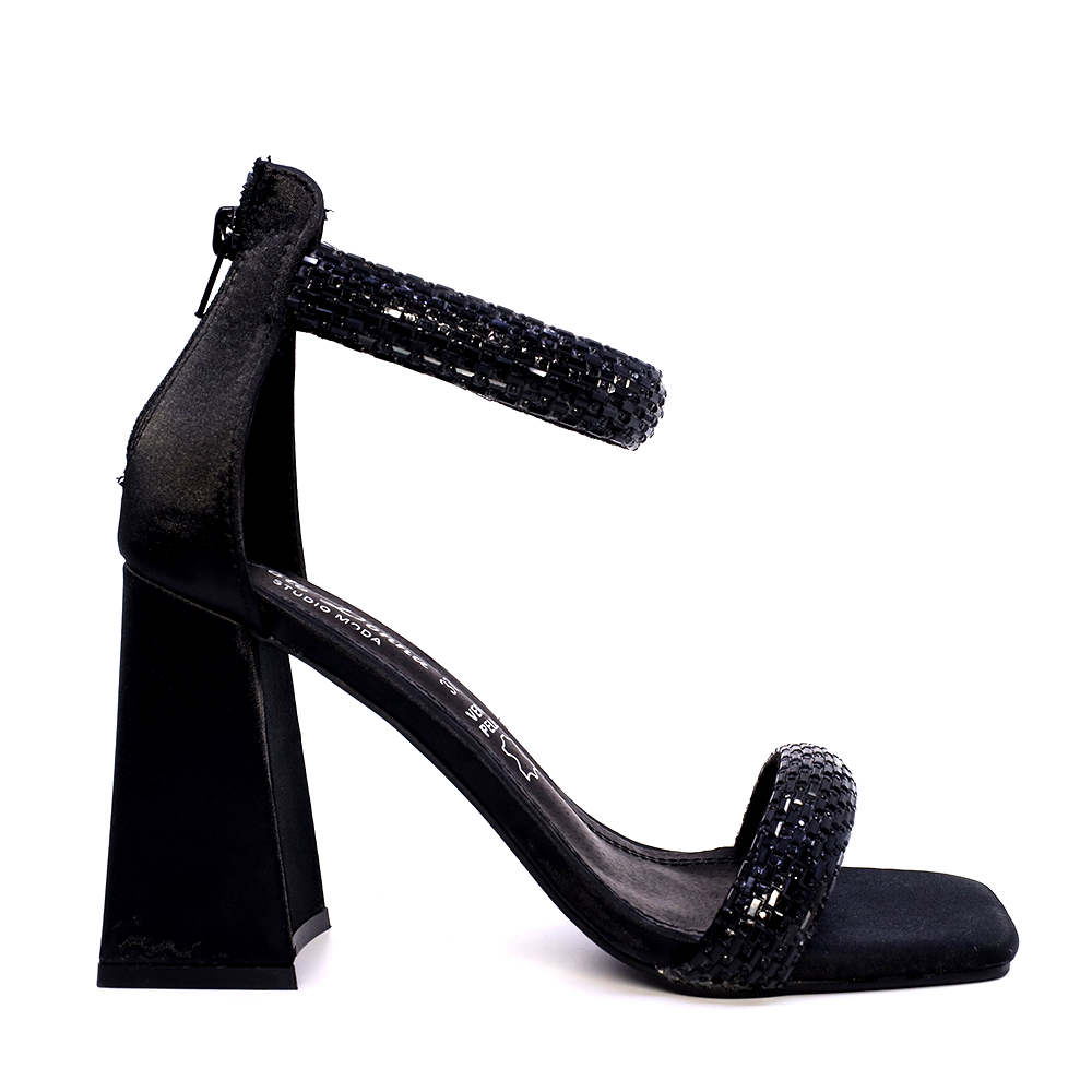 Reducere 41% – Sandale femei Solo Donna negre cu toc înalt și ștrasuri 2547DS8539N