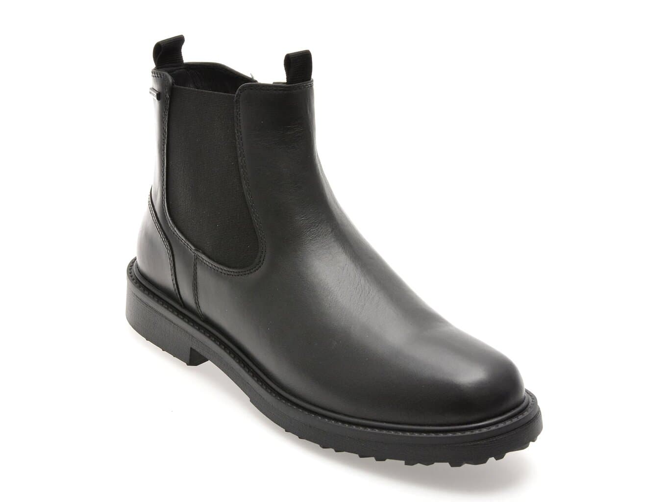 Ghetele GEOX negre, U46HQB, din piele naturală, sunt alegerea perfectă pentru bărbați care caută confort și stil.