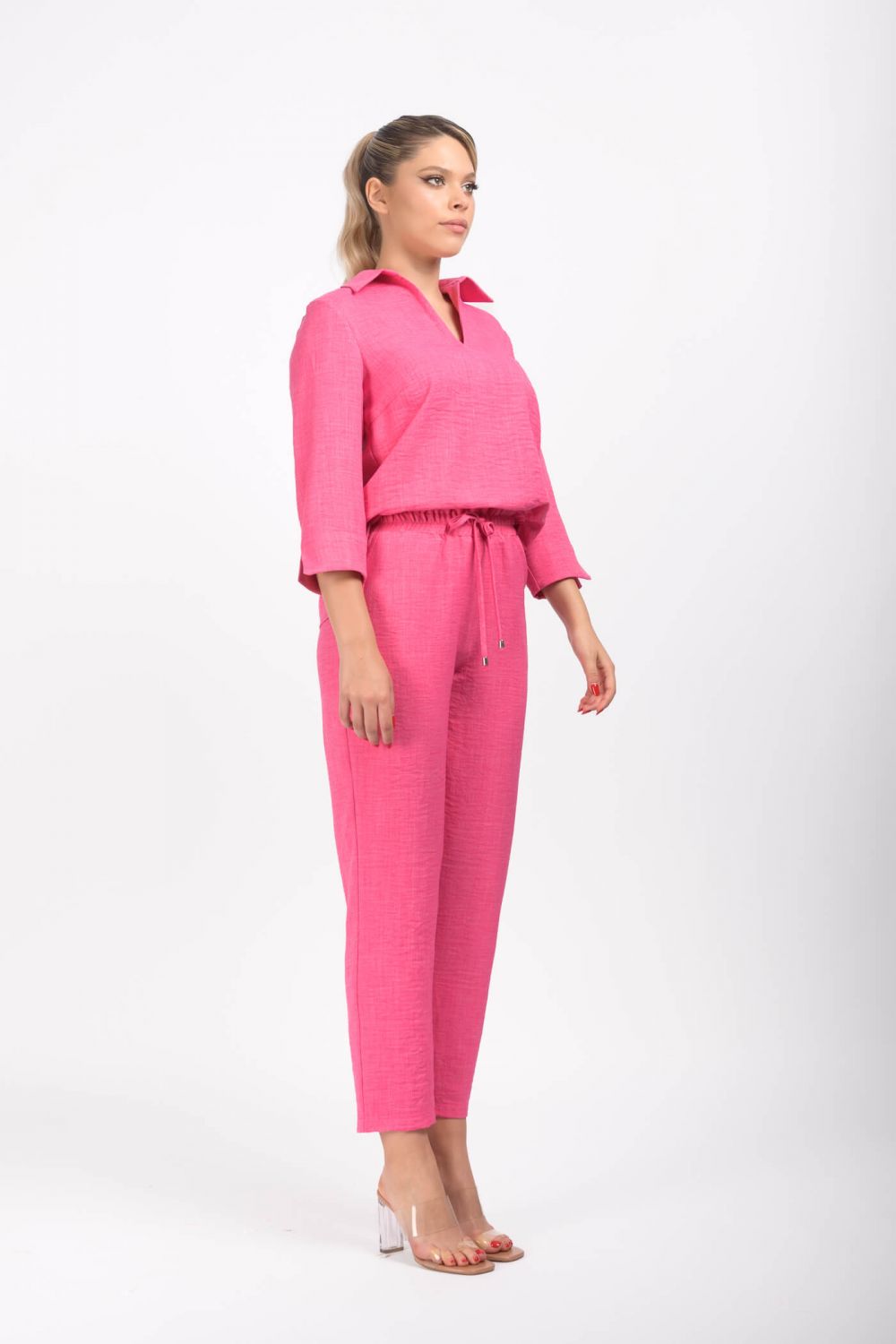 Bluza vaporoasa roz cu croi lejer ideala de sezon conceputa dintr-un material de vâscoza tip in care este foarte fin la atingere si delicat pe piele.