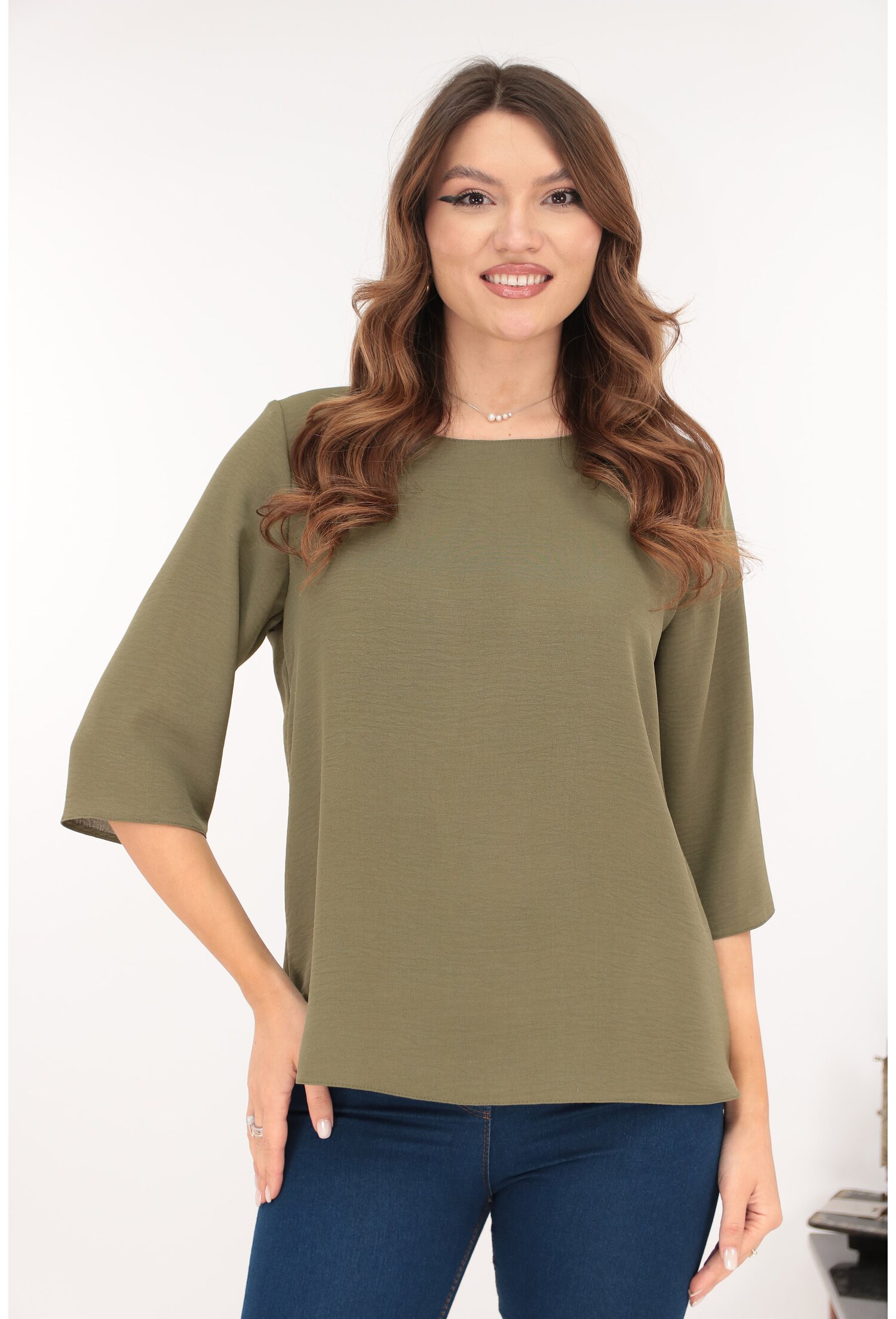 Bluza lejera uni olive din bumbac, cu maneci 3/4. Perfecta pentru tinute casual. Alege confortul si stilul!