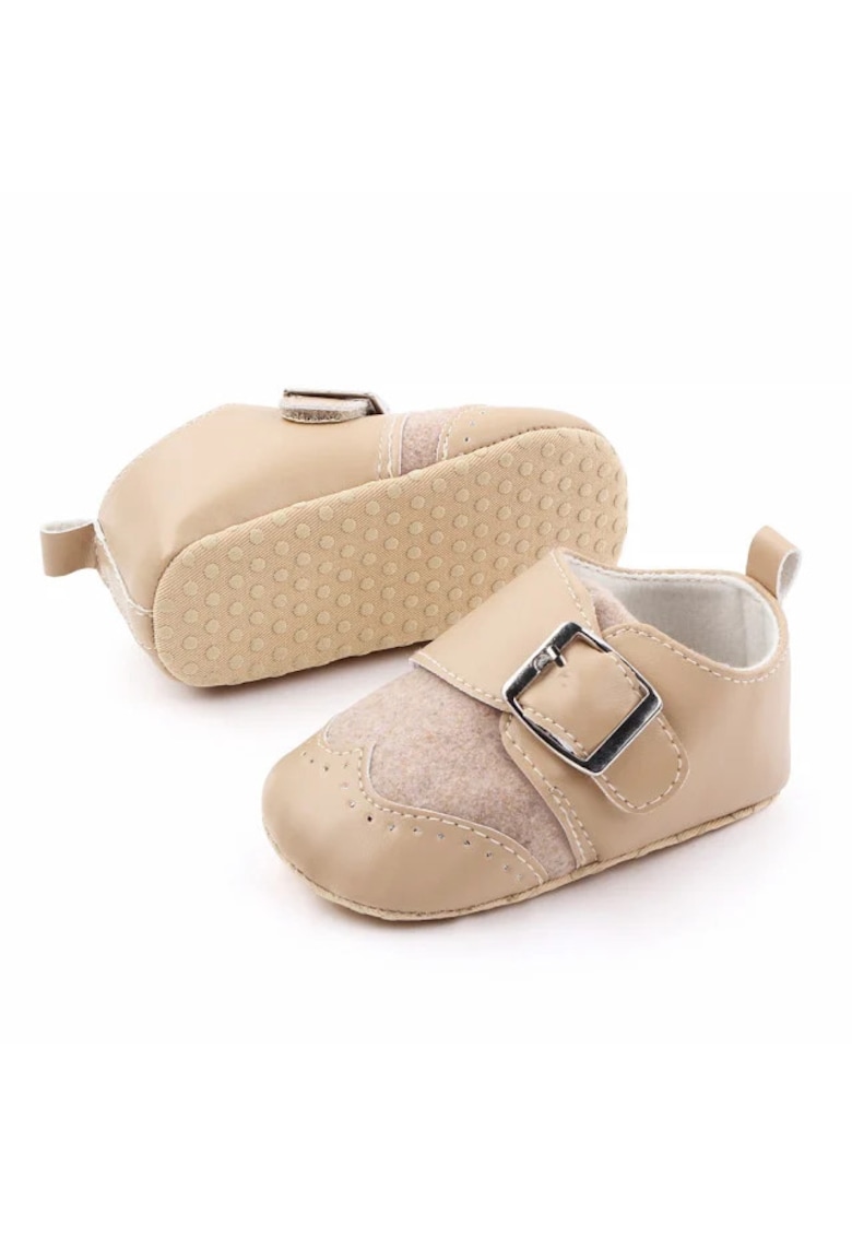 Pantofii cu cataramă pentru băieți din piele ecologică crem oferă eleganță și confort. Alegeți-i pentru ocazii speciale!