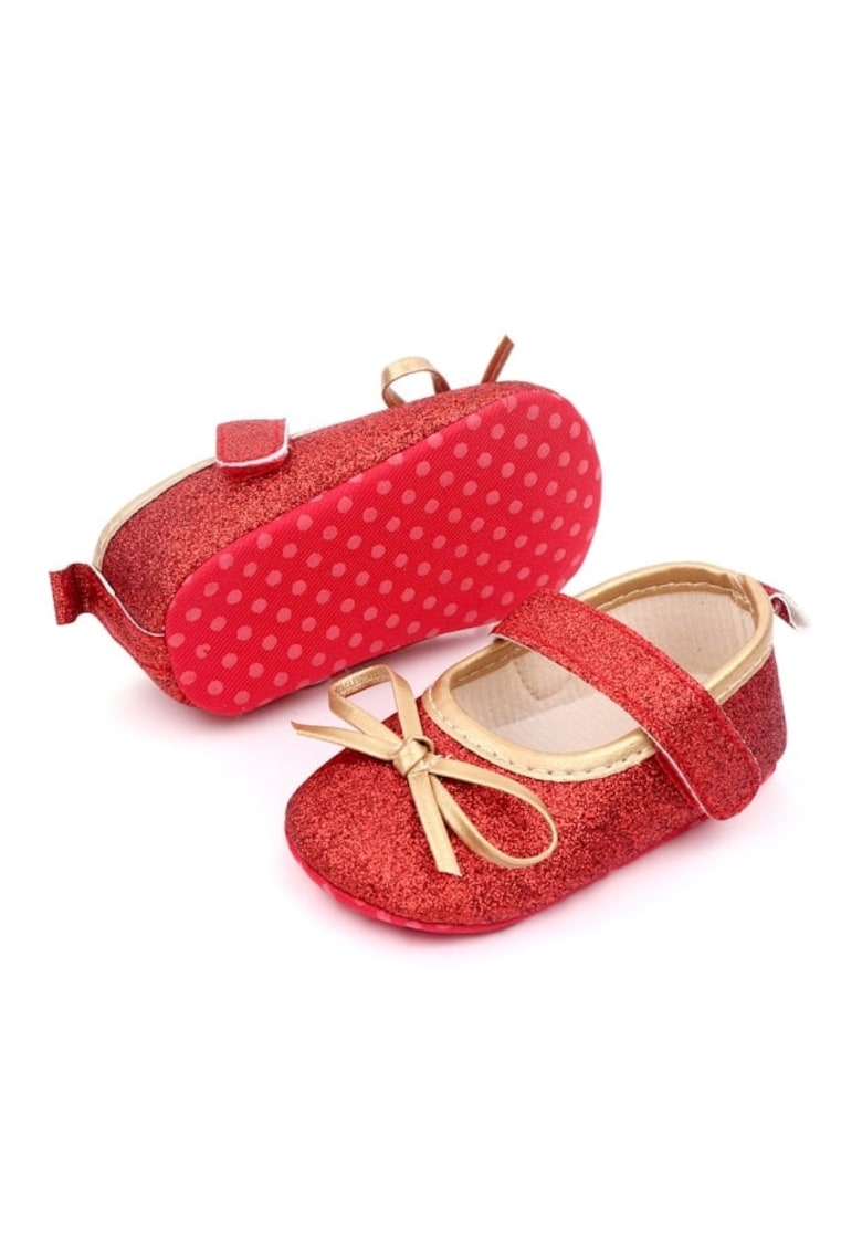 Pantofii Model AL 13479 cu sclipici roșii sunt ideali pentru fetițe de 3-6 luni. Confortabili și stilați, perfecti pentru orice ocazie!