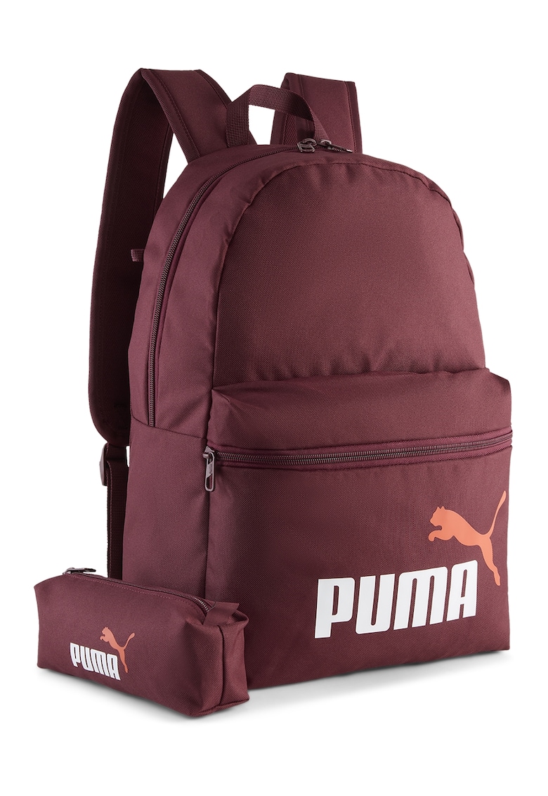 Rucsac cu logo alb/visiniu din poliester, cu penar detașabil. Ideal pentru lifestyle activ. Alege-l pentru un look modern!