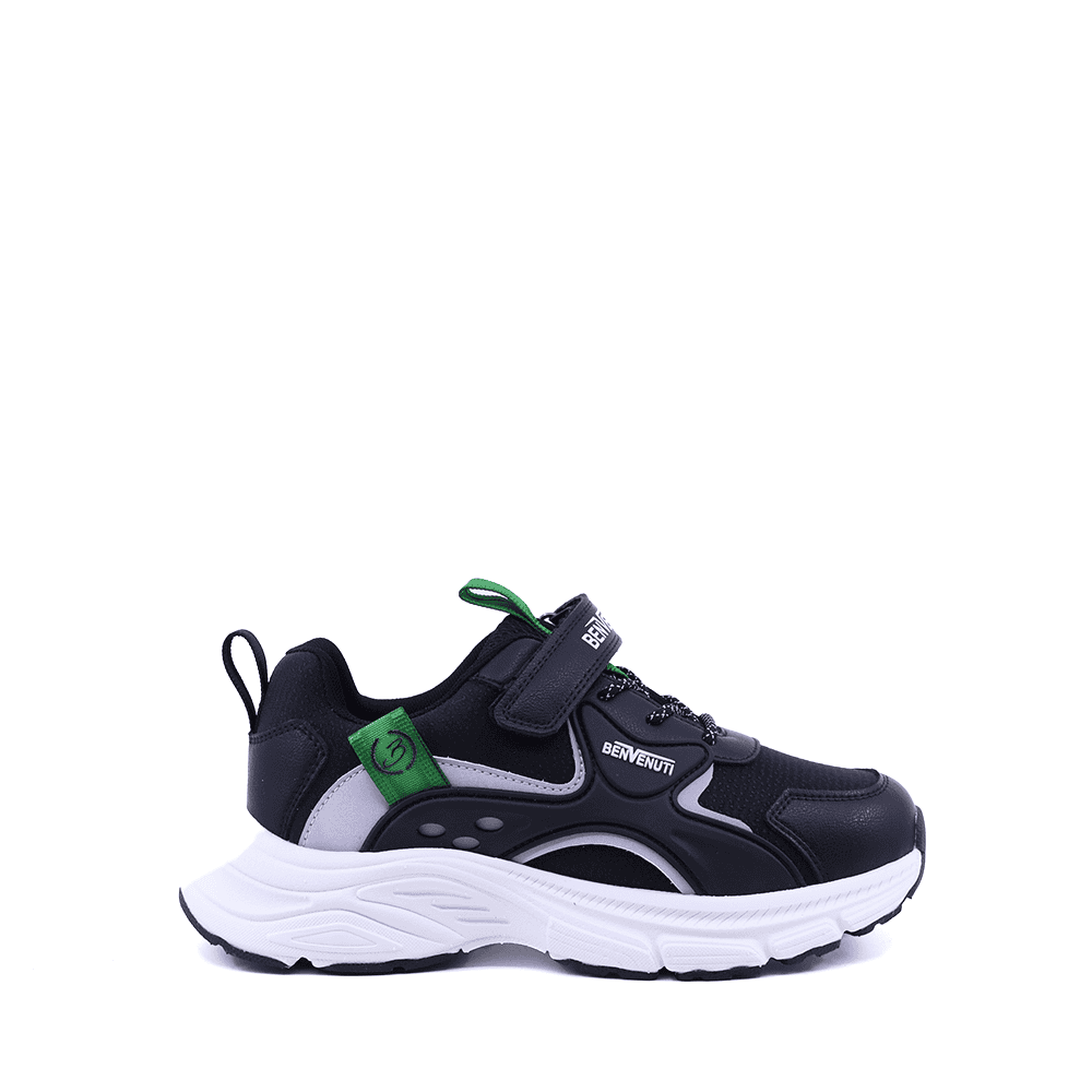 Sneakers băieți Benvenuti negri din piele, confortabili și stilați. Ideal pentru activități zilnice. Alege-i pentru un cadou perfect!