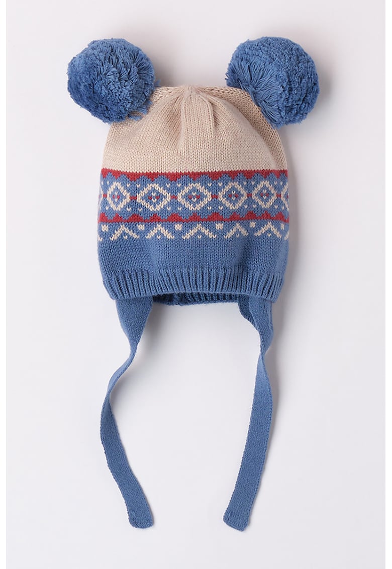 Reducere 56% – Caciula din amestec de lana cu ciucuri – Albastru prafuit/Maro nisip