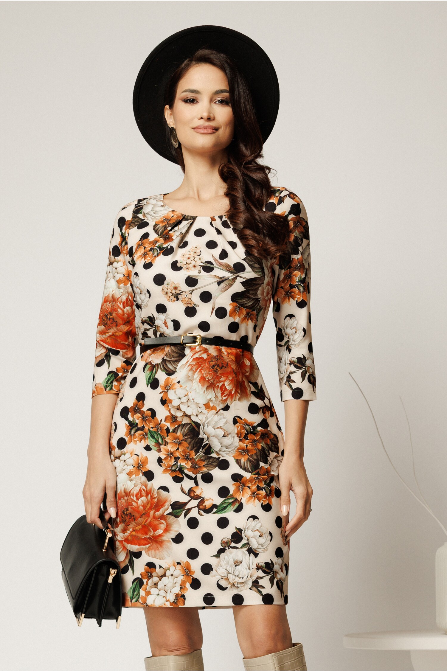 Rochia Mirela bej cu flori maro este alegerea perfectă pentru zilele de primăvară.