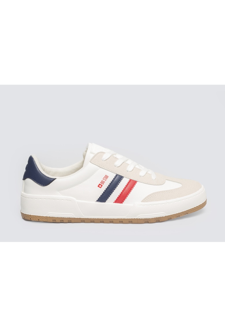 Culoarea albă, combinată cu detalii roșii și bleumarin, îi face versatili pentru orice ținută casual.