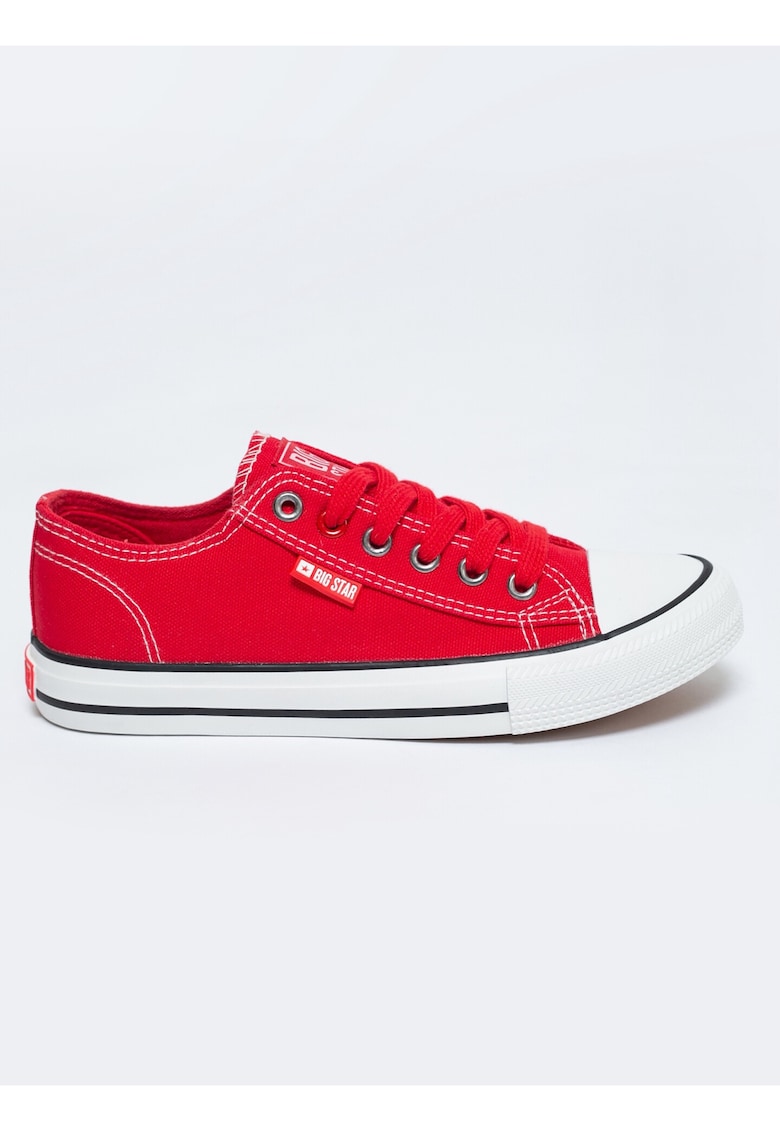 Tenisii din material textil roșu sunt alegerea perfectă pentru un stil sportiv și confortabil.