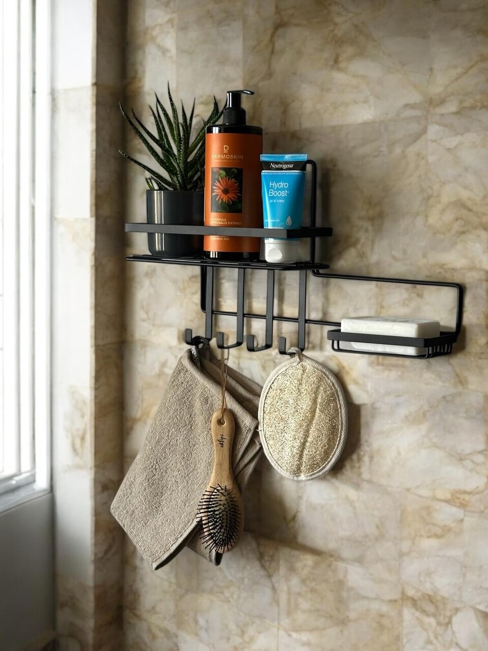 Organizator de baie L’essentiel Maison, 40x10x24 cm, negru. Menține ordine și organizare în baia ta. Alege soluția practică!
