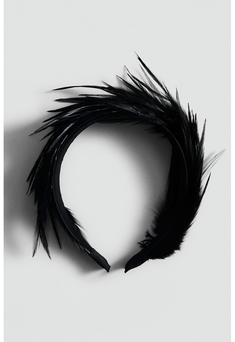 Bentita cu pene – Negru este un accesoriu elegant care adaugă un strop de rafinament oricărei ținute.