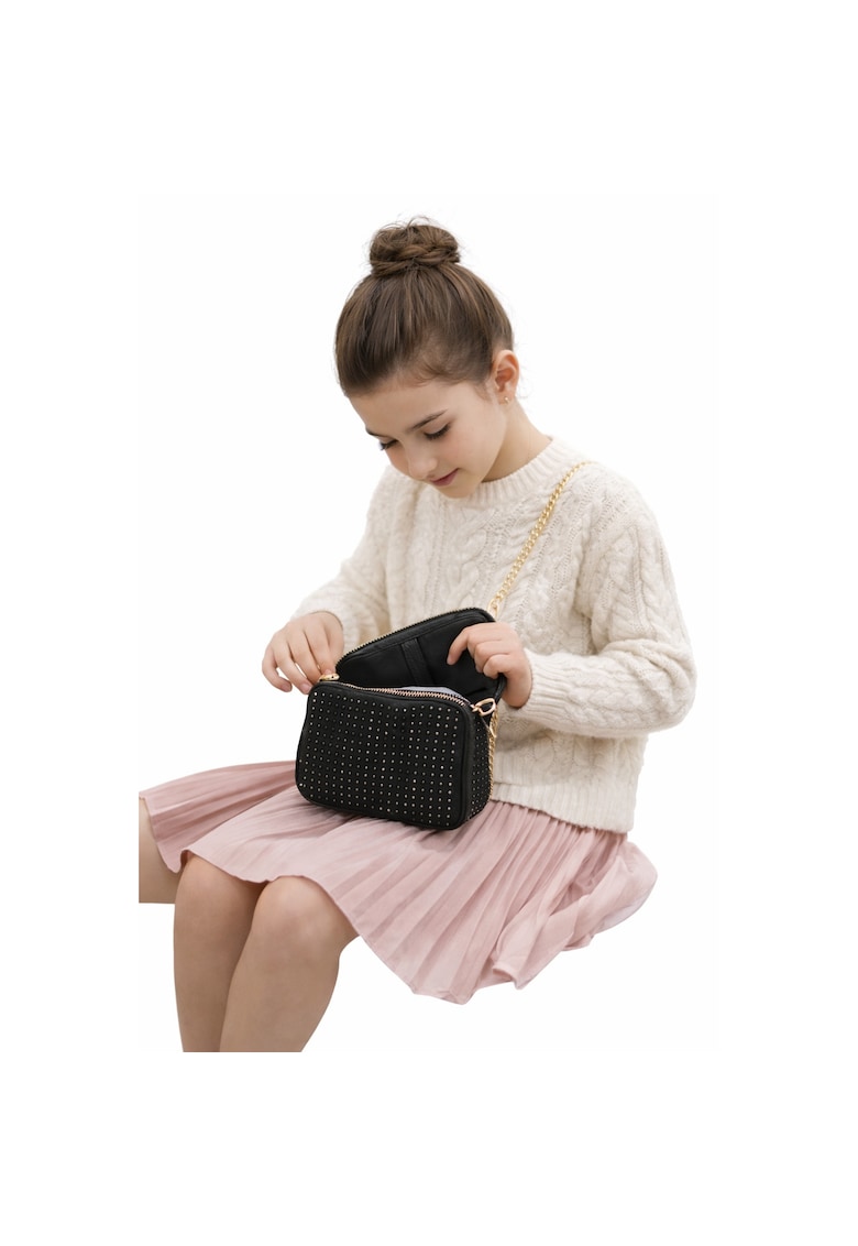 Reducere 71% – Geanta iDO pentru fete tip shoulder bag – cu bareta detasabila si detalii metalice – Negru