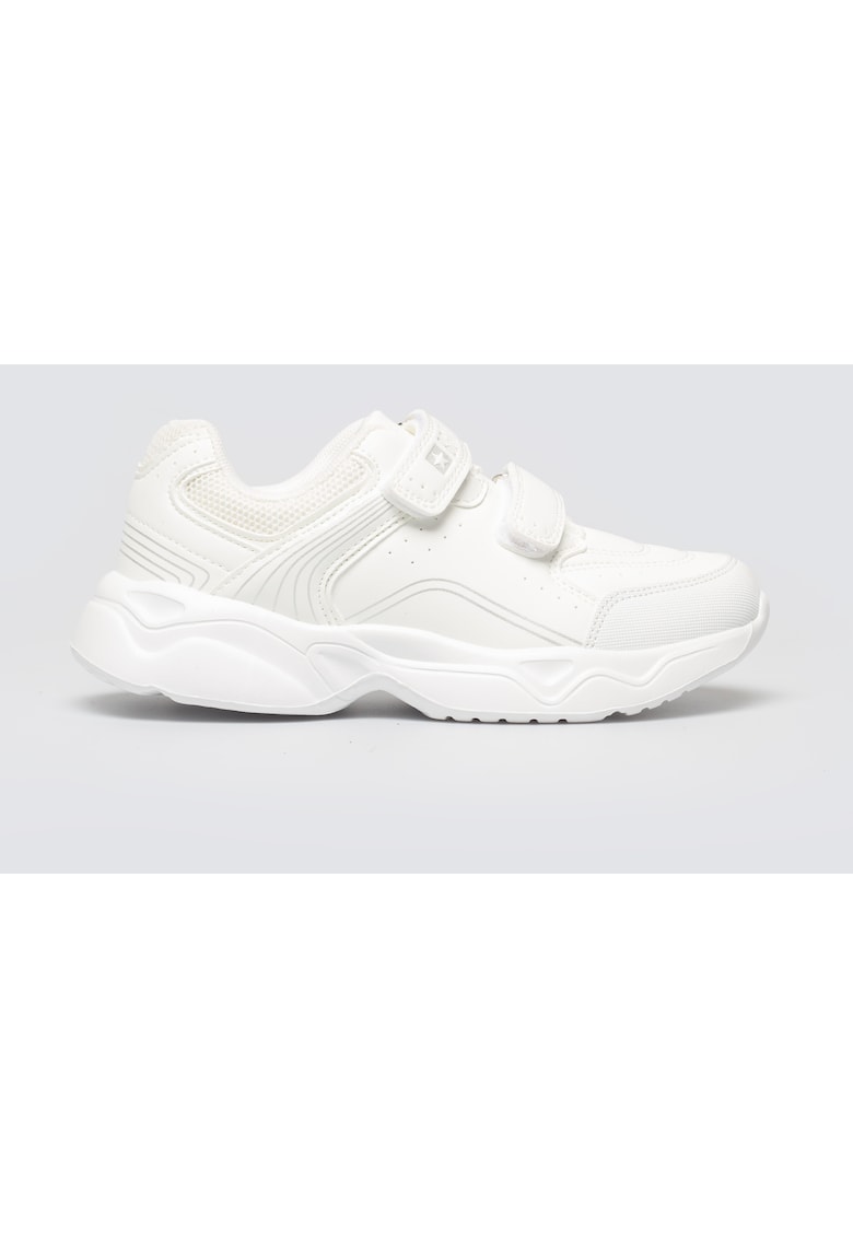 Acești tenisi albi, confecționați dintr-un amestec de material textil și piele ecologică, oferă o respirabilitate excelentă, ideală pentru zilele călduroase.