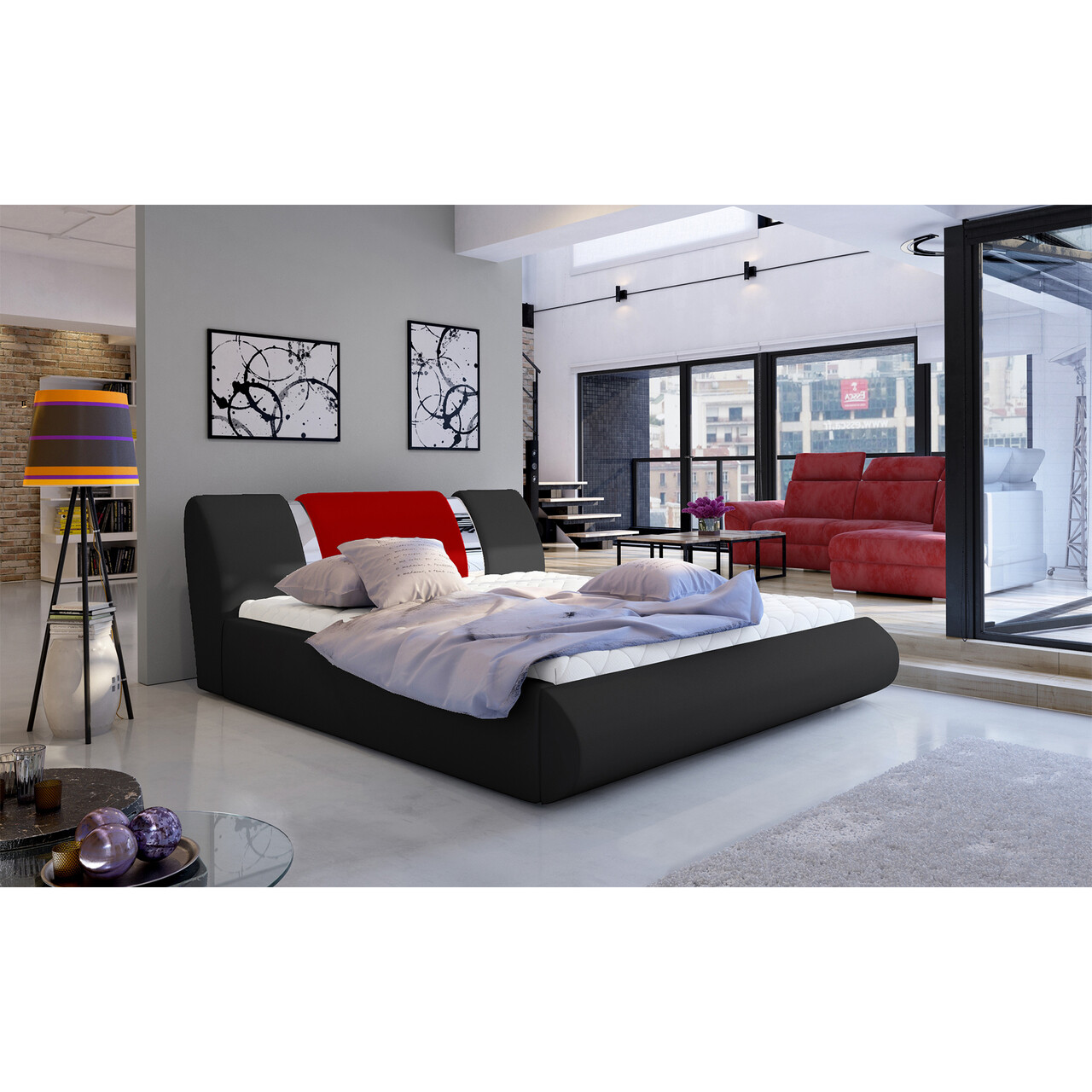 Reducere 8% – Pat tapitat cu somiera si lada depozitare, 180×200 cm, ELTAP, Flavio, lemn/poliester, negru/rosu