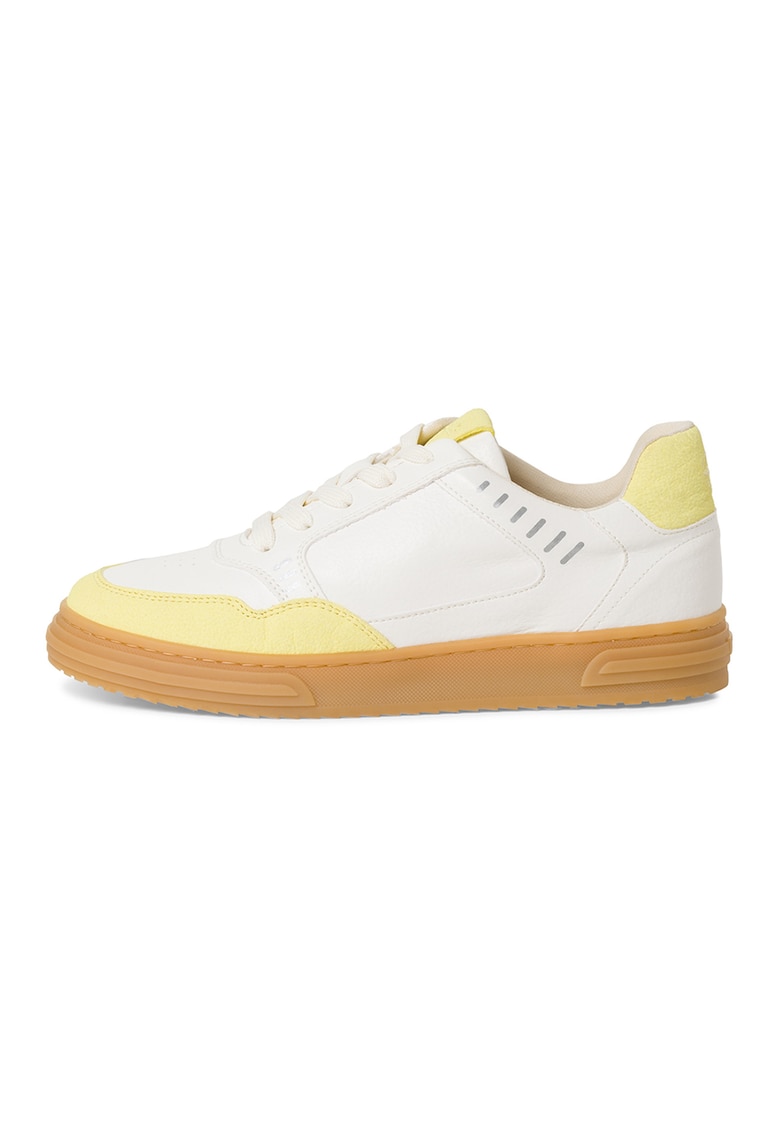 Reducere 80% – Pantofi sport de piele ecologica cu varf rotunjit – Alb/Galben