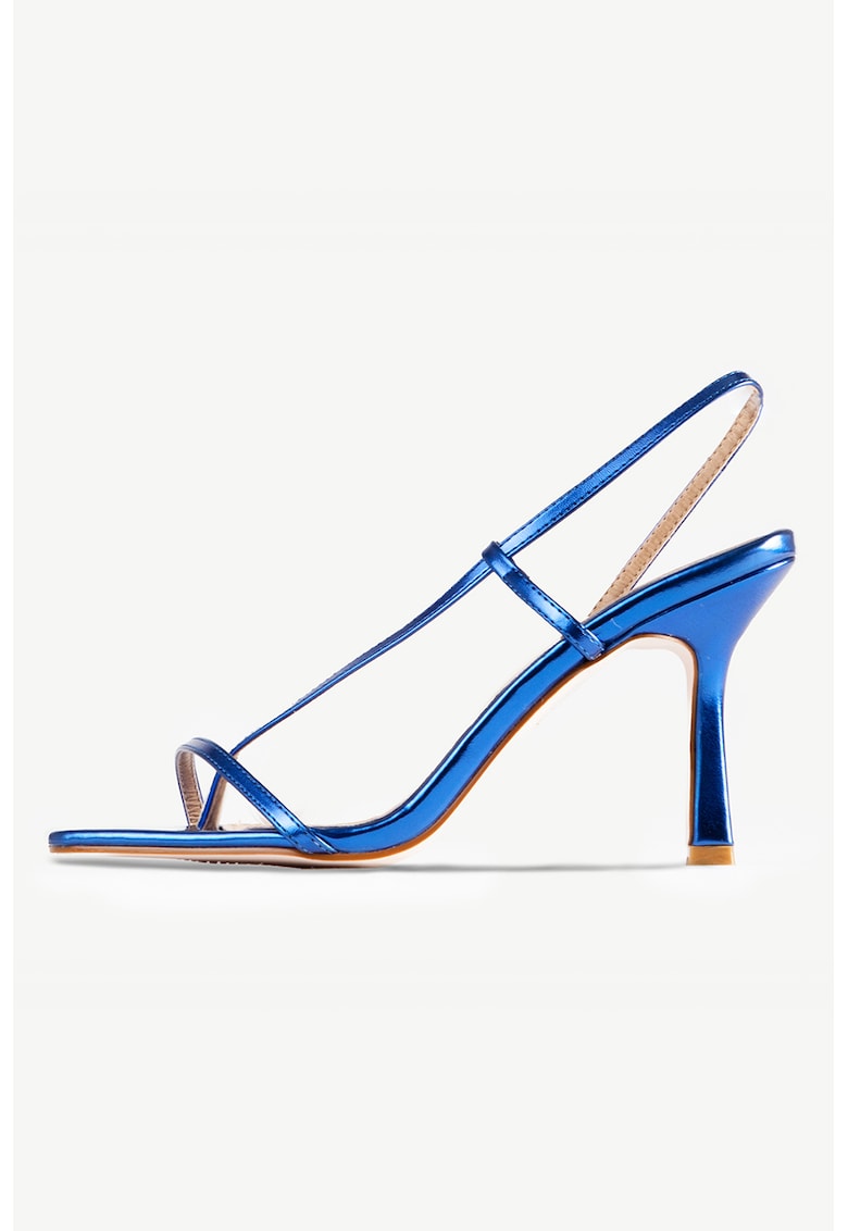 Reducere 80% – Sandale de piele ecologica cu toc si aspect metalic Wendy – Albastru