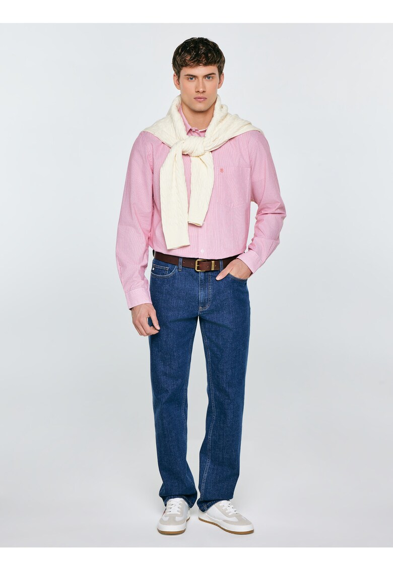 Cu un imprimeu elegant în dungi roșu-alb și o croială regular fit, se potrivește perfect atât pentru birou, cât și pentru ieșiri relaxante.