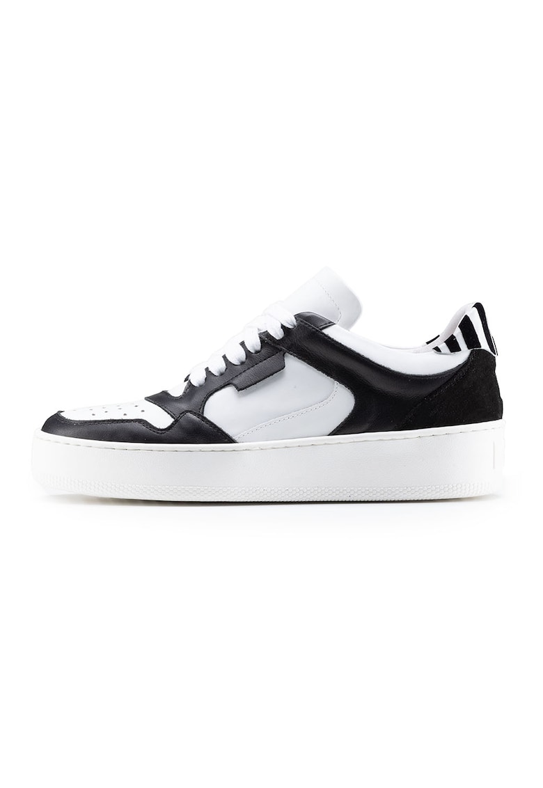 Pantofii sport de piele cu sireturi în culorile alb și negru sunt alegerea perfectă pentru un stil modern și confortabil.