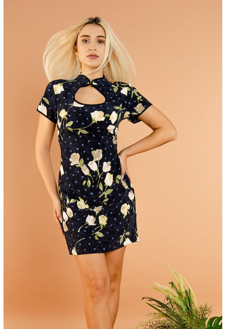 Cu un guler cu nasture și un decupaj pe partea din față, rochia este ideală pentru evenimente speciale sau pentru o zi la birou.