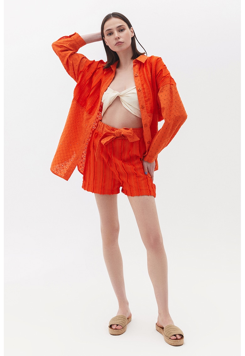 Reducere 86% – Pantaloni scurti texturati cu talie inalta – Portocaliu
