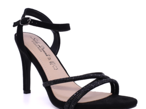 Sandalele Solo Donna negre cu toc înalt și ștrasuri oferă eleganță și confort. Perfecte pentru evenimente speciale! Alege stilul!