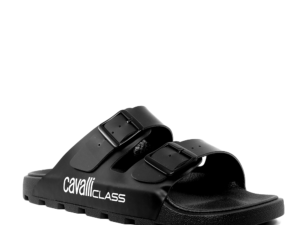 Șlapi bărbați Cavalli Class negri din cauciuc, confortabili și eleganți. Perfect pentru vară! Alege stilul casual și confortul zilnic.